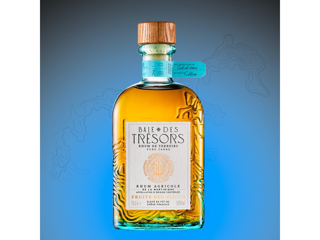 Baie des Trésors Fruits des Pluies je výjimečný rhum agricole pocházející z francouzského karibského ostrova Martinik. Tento rum je vyráběn výhradně z čerstvé šťávy cukrové třtiny pěstované na specifických parcelách v oblasti Presqu'île de la Caravelle, která je známá svým unikátním mikroklimatem a častými tropickými dešti.