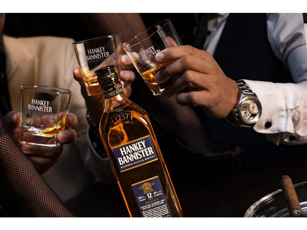 Whisky pochází ze Skotska 🇬🇧 a vyrábí ji Inver House Distillers. Značka Hankey Bannister vznikla již v roce 1757 a patří mezi tradiční blended whisky s dlouhou historií.
